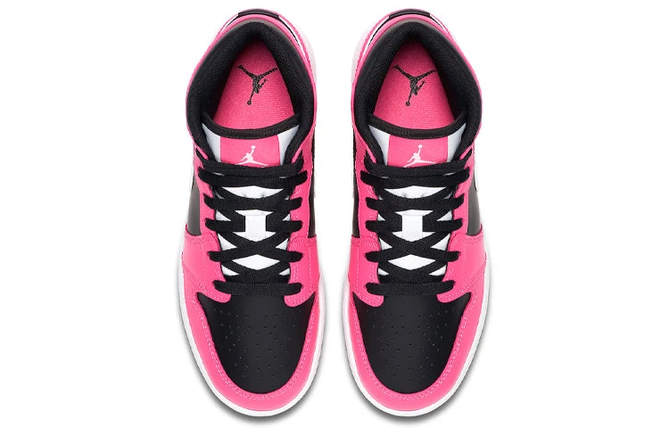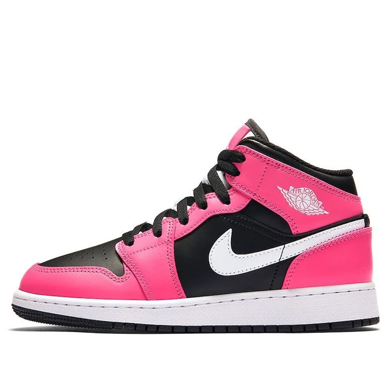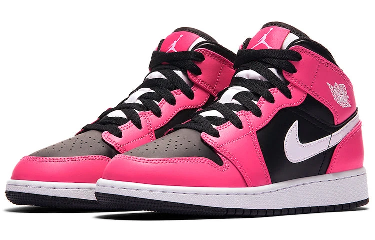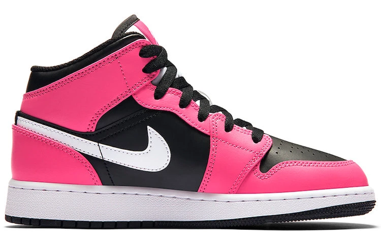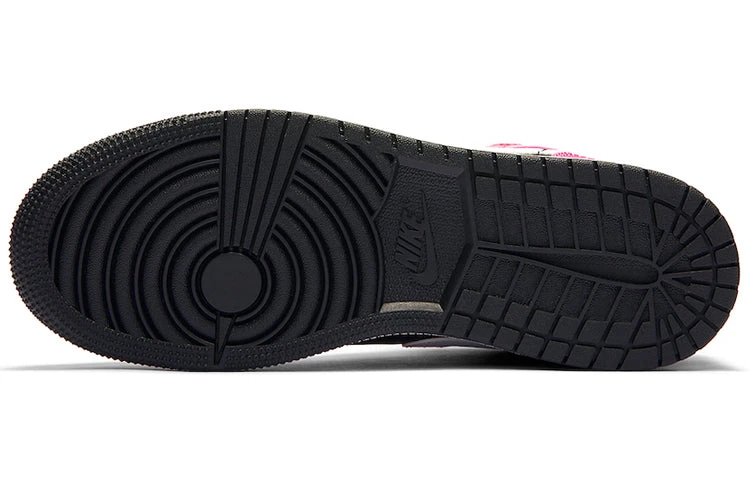 This mid-top Air Jordan 1 comes dressed in a black, white and pinksicle color combination. Highlighted with black leather across the base while pink is applied to the overlays.