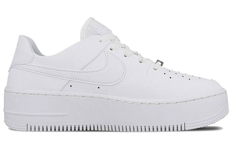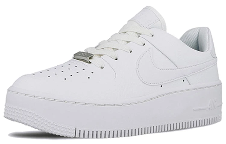 The Nike Air Force 1 Sage Low “White” features a bold but feminine appearance, with a platform sole and an all-white leather upper. The pair celebrates simplicity with minimum accents other than a silver deubre.